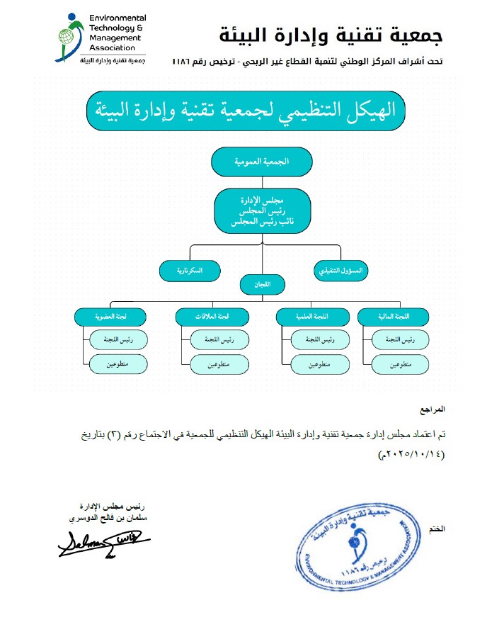 الهيكل التنظيمي الهيكل التنظيمي تهدف الجمعية الى تعزيز وتبادل المعرفة في التكنولوجيا البيئية والتطوير المهني للأعضاء والمهتمين وتوفير فرص التواصل والقيام بالأنشطة البيئية التثقيفية والتوعوية.